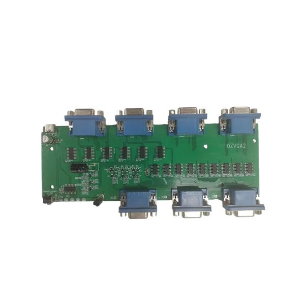 This product uses a VGA video switching processing chip NX6159, a VGA video allocation processing chip NX7615, and a high-performance control processor NX6316 to form a high-performance circuit. It can input four VGA video signals and switch one channel to three display terminals or devices simultaneously, achieving no ghosting, no dropout, and high-quality image effects. This solution is widely applied in satellite set-top boxes, PCs, laptops, as well as small and medium-sized conference halls, multifunctional conference halls, security monitoring and other fields.